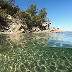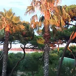 The beachfront Pinede Plage 5 Pers Vue Mer Jacuzzi Clim Parc Exotique lies 3.1 km from Plage des Darboussieres. You can make use of an aqua park, a sundeck, and a golf course, or indulge yourself with a solarium and a Jacuzzi on site.